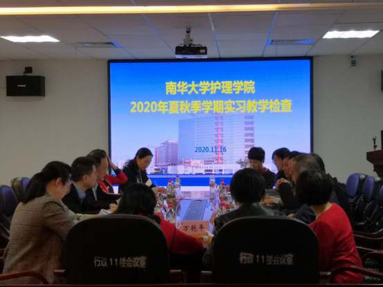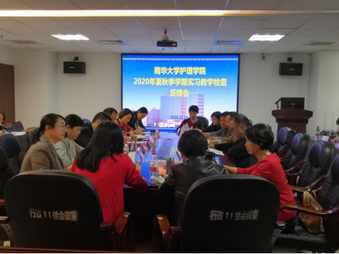 南华大学附属第二医院对我院的实习教学检查高度重视,李国庆副院长和刘文捷副院长出席。首先由医院护理部主任谭玲玲对护理实习的教学工作进行了详细的汇报。党委书记陈晓坚对实习教学检查工作的专家分组及流程安排进行了介绍,四组专家对出科临床技能考试、学生完整病例及实习手册检查、小讲课、教学病例讨论、护理教学查房情况,护理部教学档案、临床科室教学档案、教师个人档案,学生教室、宿舍、食堂等方面进行检查,深入了解本科生与研究生的实习情况。