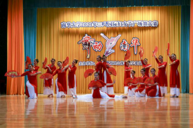 比赛当天,护理学院团学会的学生代表们悉心帮助老师们化妆,院长廖力、党委副书记彭建南等院领导亲临大赛现场,为学院代表队加油助威!在观众的期待中,我院代表队第一个出场。老师们姣好的面容配上一袭红衣、一把红扇,伴随着富有京韵的音乐,步伐轻盈、裙角翩翩,红扇一张一合间尽显优雅,引得台下观众的阵阵掌声。大家情不自禁地称赞道:“哇!太美了!”最终,在28个参赛队伍中,护理学院以9.581的高分成绩位列校本部第四名,喜获二等奖!