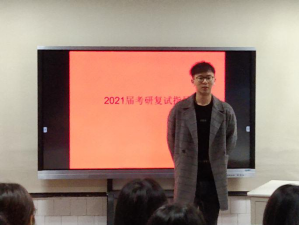 李翼老师致开场辞。随后,四位研究生结合自己考研复试的经历,就复试前如何准备笔试和面试、如何联系导师、初试分数偏低的学生如何调剂等问题阐述自己的经验和见解,为准备考研复试的同学们答疑解惑,细致传授考研复试技巧。