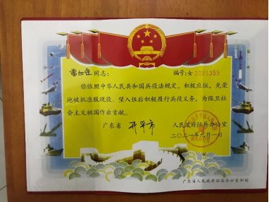 国无防不立,民无兵不安,大学生征兵工作是治国安邦的大事,是加强国防和军队建设的迫切需要。2021年9月1日,365英国上市公司191班雷加佳同学响应国家号召,携笔从戎,积极应征,光荣入伍。