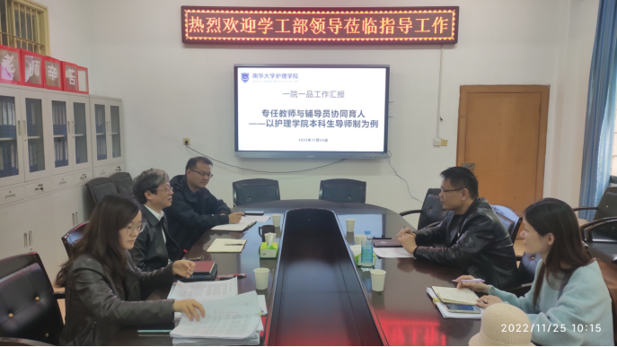 会上,辅导员肖璐璐介绍了学院“辅导员与专任教师协同育人机制探索——以护理学院本科生导师制为例”特色项目的建设情况:一、已实现全参与、全覆盖、全过程、全方位;二、建立了完整的本科生导师管理制度;三、项目的育人成效突出。并对项目后续建设思路进行了介绍:一、用心加强导师队伍建设,打造教授天团成长辅导计划;二、用情激发学生主观能动性;三、用智完善科学评价激励体系。