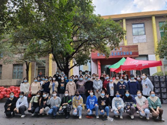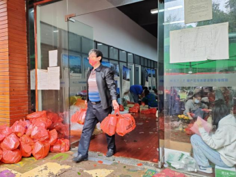 下午,袁春阳来到现场,以志愿者身份,全程和大家装袋装车。同时,根据劳动强度和同学们工作时长和劳累程度,及时调度,安排志愿者轮换轮休。