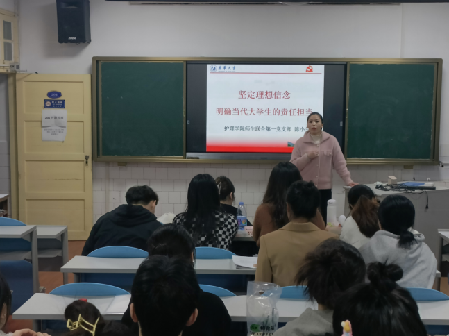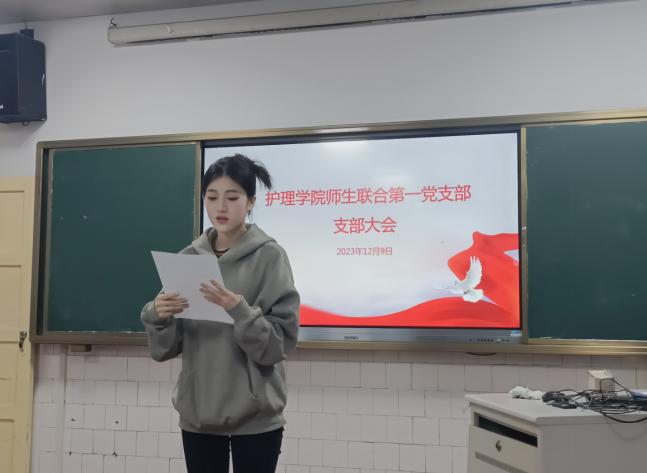 12月9日,护理学院师生联合第一党支部在护理学院多媒体报告厅召开了支部大会,党支部全体正式党员、预备党员、发展对象参加了会议。会议由党支部书记陈小兰主持。