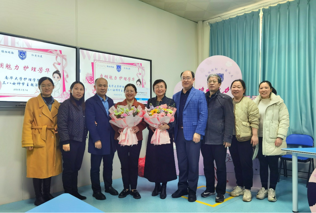 活动开始前,南华大学党委委员、副校长兼衡阳医学院院长王福俤一行,来到护理学院慰问优秀女职工代表,传达了学校党委的深切关怀,并送上鲜花。
