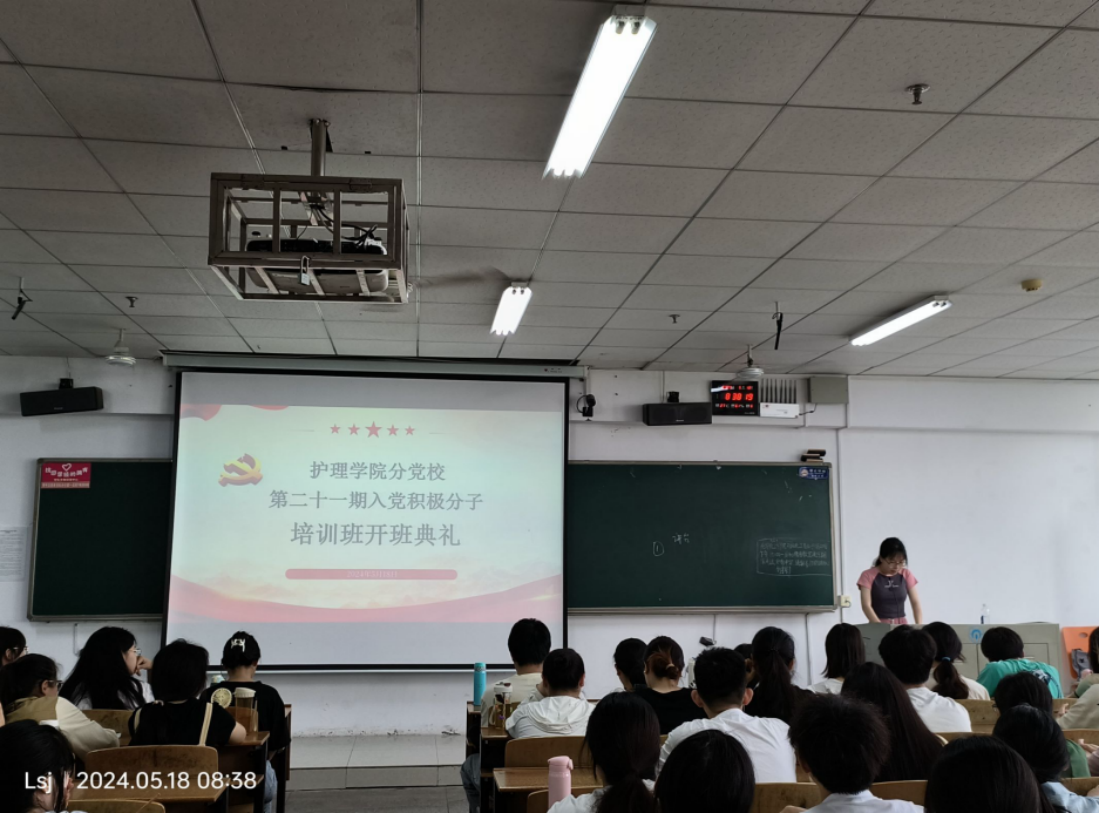5月18日上午8点,护理学院分党校第二十一期入党积极分子培训班开班典礼在南华楼412教室如期举行。护理学院党委书记、分党校校长袁春阳和本期180余名入党积极分子参加。开班典礼由护理学院师生联合第一党支部书记兼培训班班主任陈小兰主持。