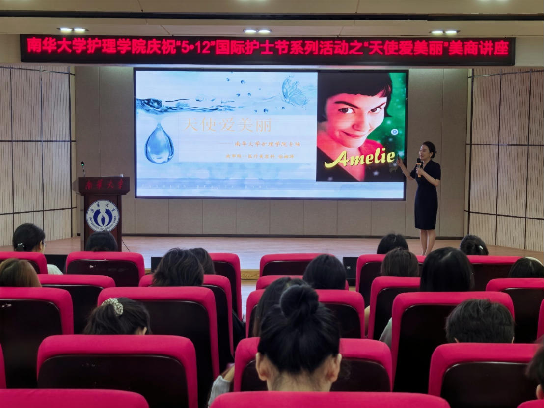 5月9日下午,护理学院在南华大学红湘校区医研楼学术报告厅举办了一场主题为“天使爱美丽”的美商主题讲座,以此庆祝第144个“5·12”国际护士节。本次讲座特别邀请了荣获“衡阳市最美护士长”称号的南华大学附属第一医院护理文化建设委员会负责人、医疗美容科护士长徐湘萍作为主讲嘉宾。