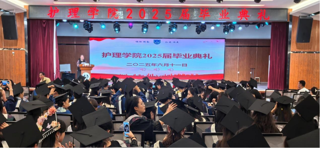 6月11日下午,护理学院2025届毕业典礼暨学位授予仪式在北校区学生活动中心隆重举行。护理学院院长李忠玉出席并讲话,学院党委副书记王祥主持毕业典礼,副院长曾谷清、王蓉和校友代表、导师代表、家属代表以及2025届全体毕业生参加了毕业典礼。