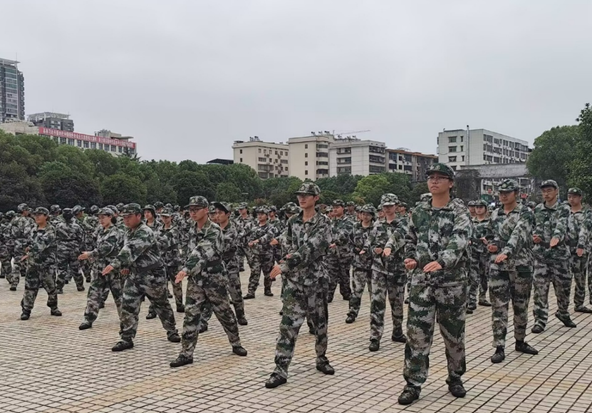 “稍息!立正!”清晨的南华广场上,教官的指令清晰有力。尽管连日阴雨让训练场地带着几分湿冷,新生们的队列依旧如标尺丈量般整齐——抬手、摆臂、踢腿,每一个动作都凝聚着十几天的反复打磨,迷彩服衣袖相互摩擦的“沙沙”声,成了训练场最有节奏的背景音。从最初的动作生疏到如今的整齐划一,汗水浸透的迷彩服、磨出薄茧的手掌,都是他们向“合格军人”标准靠近的见证。