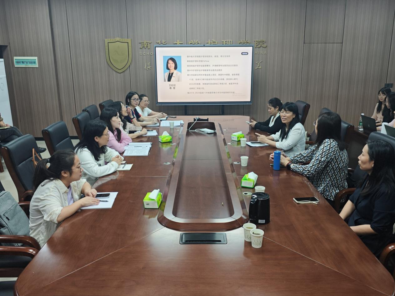 2025年10月17日晚,护理学院在南华楼902会议室组织召开2026年国家自然科学基金申报专家指导会。会议特邀中南大学湘雅护理学院院长王红红教授莅临指导,旨在进一步提升学院教师国家自然科学基金项目申报质量与立项率。护理学院领导李忠玉院长、曾谷清副院长、王蓉副院长及拟申报教师参加了本次会议。