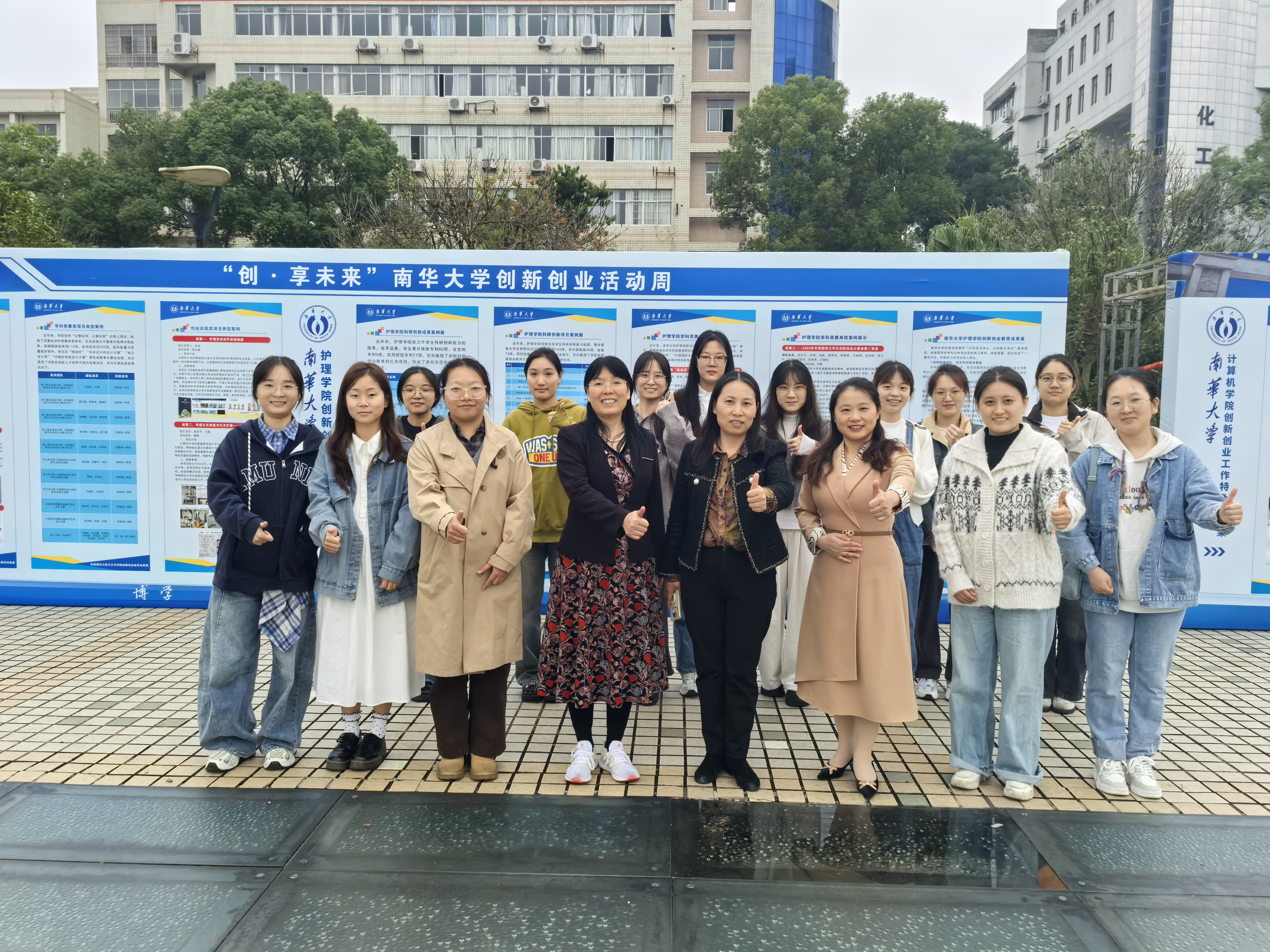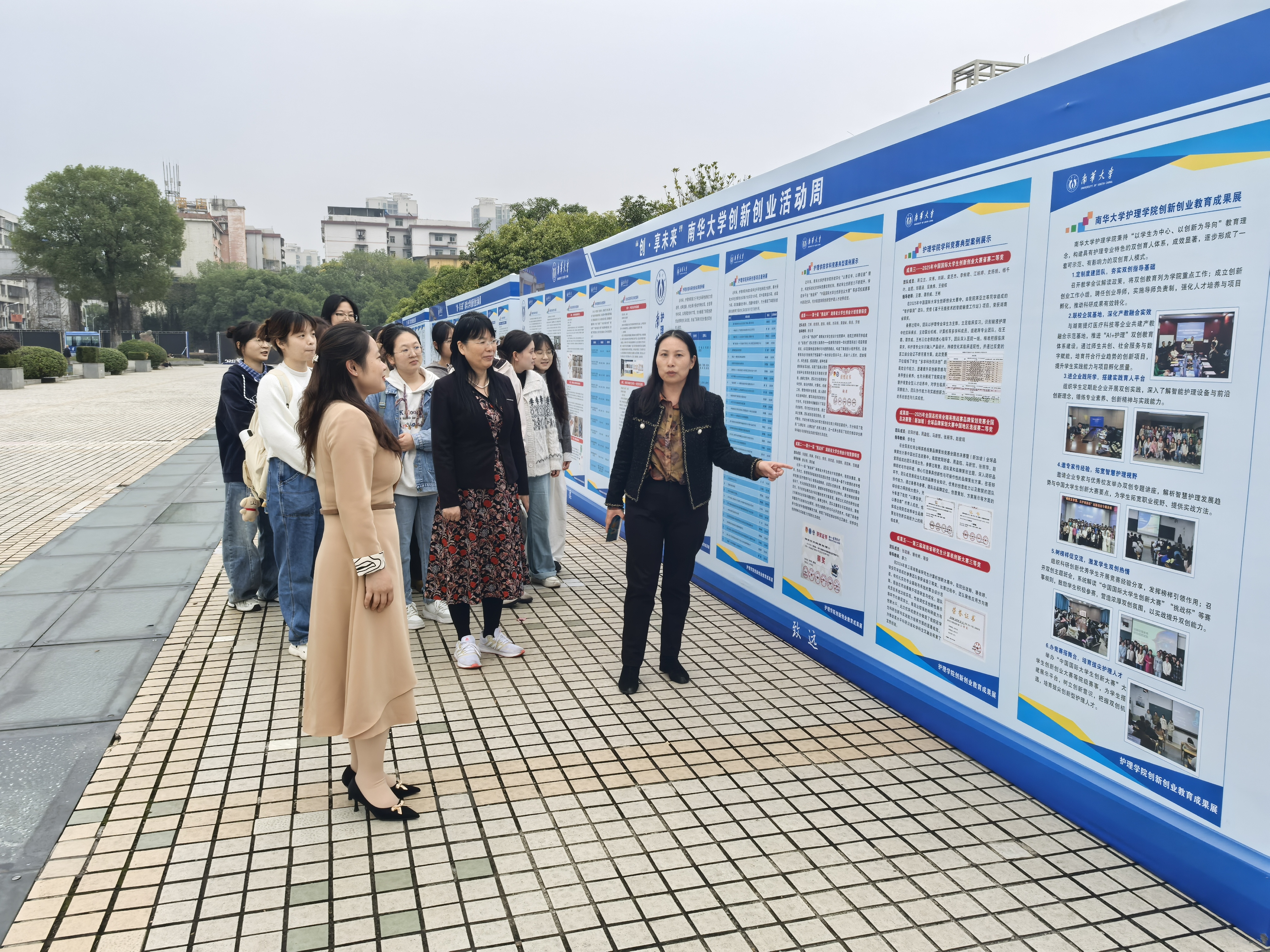 护理学院高度重视此次双创周,积极响应学校号召,精心组织并策划多项主题活动,广泛动员师生共同参与。10月31日,学院组织师生代表前往南华广场参观“创新创业成果展”。现场气氛热烈,展板前聚集了不少驻足观看的师生,大家或俯身细读内容,或围绕项目低声交流,展现出对创新创业实践的浓厚兴趣。