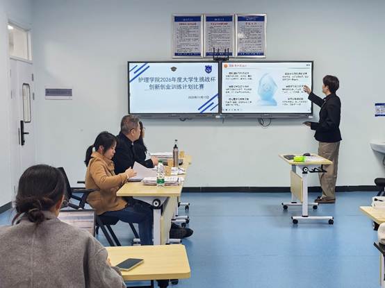 为深入推进创新创业教育,激发护理学子的创新活力,11月17日至11月18日,护理学院2026年“挑战杯”大学生创新创业计划大赛答辩会在护理楼214会议室举行。比赛特邀请尹心红、赵琼兰、高勇强三位老师担任评委,全院本科生和研究生共21支参赛团队同台竞技,项目涵盖老年慢病智慧化管理、智能输液等护理行业前沿内容。