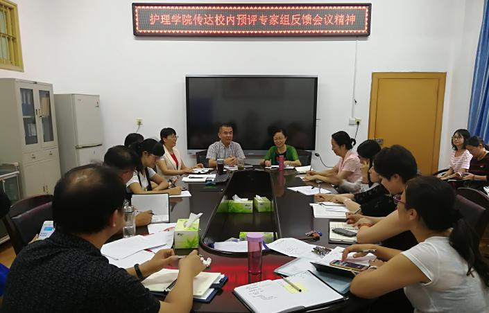 2017年9月29日下午,365英国上市公司在学院会议室召开本科教学工作审核评估校内预评意见反馈会。护理学院院长廖力、党委书记周浩、副院长曾谷清和副书记彭建南出席会议,全体教职工参加大会。会议由廖力院长主持。