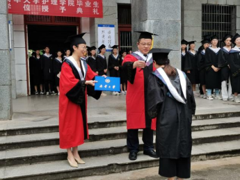 最后,副校长夏昆教授致辞。他首先表达了对全体毕业生们的热烈祝贺,祝贺大家圆满完成学业。他特别提到,今年是党的百年华诞,也是护理学院创造新历史的一年,并对护理学院各方面取得的成绩表示肯定。他对全体毕业生提出两点希望,一是希望大家在平凡中追求卓越,把小我融入“健康中国”的大我、医学的大我、人民的大我乃至全球健康的大我,在服务国家、服务人民、服务社会中不断超越自我、超越今天。二是希望大家在奋进中涵养身心,在新的工作或学习岗位中,要善于发现生活的精彩和美好,常怀感恩、心怀大爱,修身养性,锤炼品格,并表达了对全体毕业生乘风破浪、鹏程万里的美好祝愿。