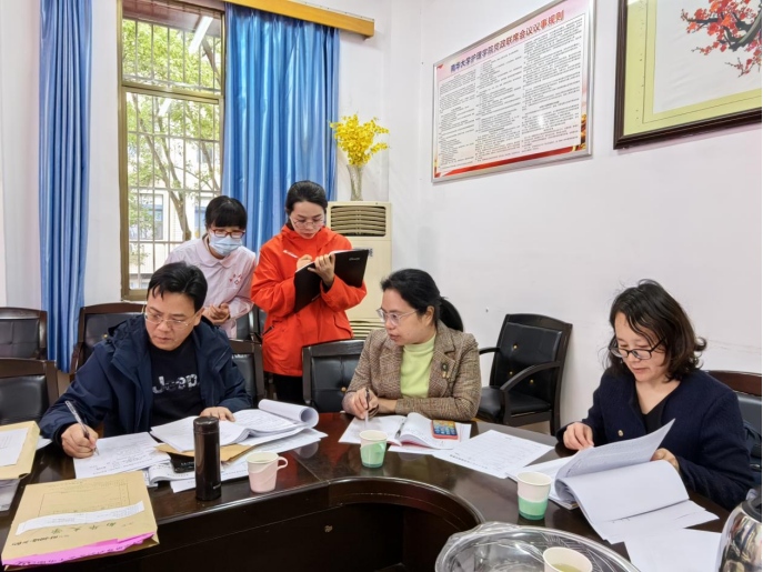 督导组组长赵飞骏教授进行检查任务分配,各位专家分别从学院教务运行管理、系室教学文件、课程设计与考核、毕业实习与实践基地建设、学生学业预警与帮扶等五个方面对护理学院教学材料进行全面细致地检查。