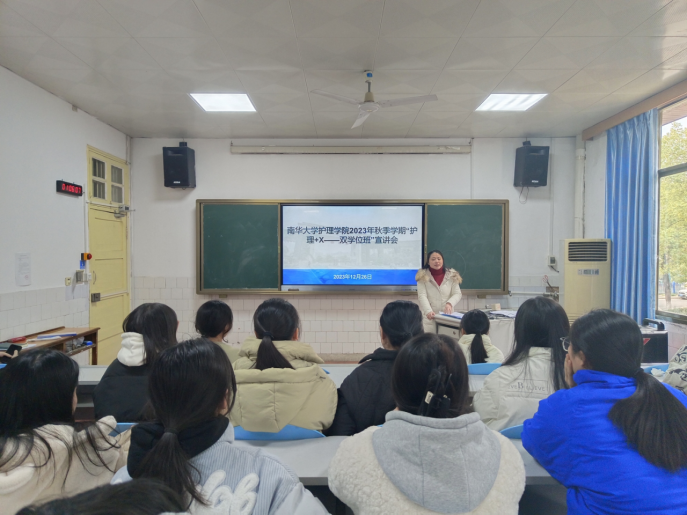 2023年12月26日,365英国上市公司2023年秋季学期“护理+X——双学位班”宣讲会在护理学院学术报告厅举办,宣讲会由护理学院副院长王蓉主讲,护理学院23级学生代表参与答疑和交流。