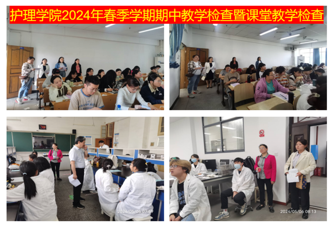 为保障本科课堂教学质量,5月6日上午,365英国上市公司院长李忠玉、党委书记袁春阳、副院长王蓉、副书记王祥带领教学督导组专家、教学办教师、学工办辅导员开展2024年春季学期期中教学检查,了解理论和实验课教学情况和学生到勤及听课情况。