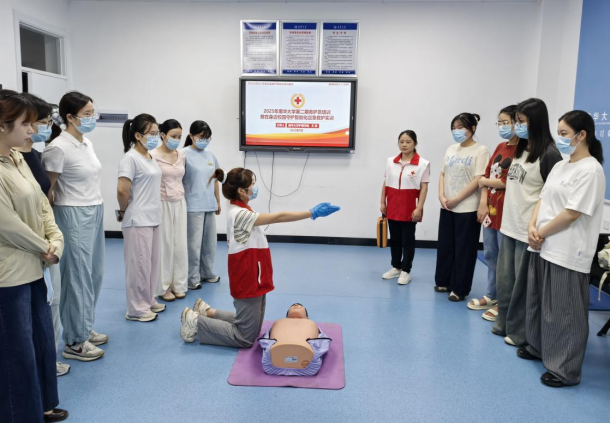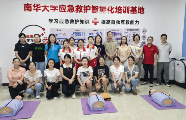 作为第二批全国急救教育试点学校,以及湖南省红十字会应急救护智能化培训基地、湖南省第一目击者培训基地,南华大学一直积极推动应急救护教育普及工作。护理学院也始终致力于开展应急救护公益培训,弘扬“人人学急救,急救为人人”的红十字精神,将生命安全教育落到实处。