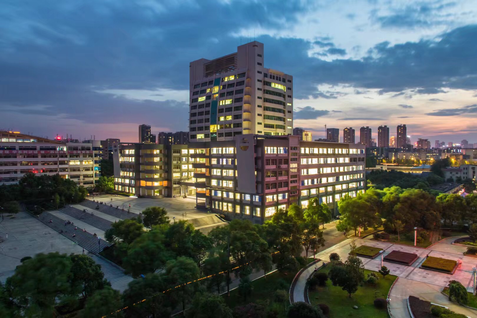 她用着固有的激情,渲染着济济一堂的学子,洋溢着斑斓的颜色。她喜欢微笑,柔美的蓝天与和谐的绿树是她不改的颜色;她喜欢歌唱,书声、鸟鸣或是静默,都是她特有的旋律。增设的校区、校舍,逐步加强的师资力量,不断增加的图书馆藏书量,还有不停吸纳着神州大地的人才,都是她为来往的学子用心准备好的梦想资源。