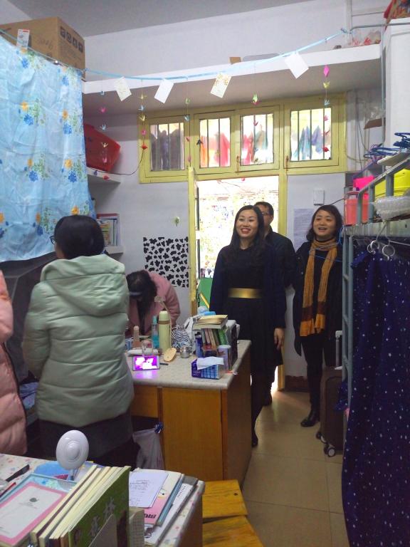 学院领导对每个宿舍逐一走访,了解学生到校情况,给同学们送去新年祝福和新学期的祝愿。期间,他们与同学们亲切交谈,询问寒假学习和生活等方面的情况,细心嘱托同学开学安全等方面的注意事项;提醒同学们调整好作息时间,为新学期做好准备。同学们争相讲述自己寒假中的趣闻轶事,与老师们分享丰富多彩的寒假生活。余晓秋副书记希望同学们迅速调整心态,投入新学期的学习生活中;注意用电、用水等宿舍安全;同时希望各宿舍长在开学的关键时期密切注意宿舍内同学们的心理动态,做到及时发现与应对。