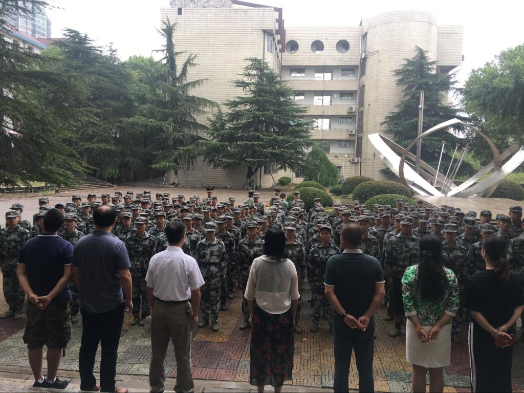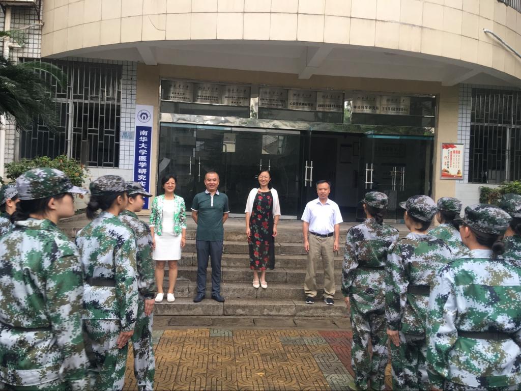 2019年9月2日,护理学院院长廖力、党委书记周浩、副书记彭建南、副院长何平平及学院辅导员老师等一行人来到南华大学放飞广场,看望并慰问军训新生。