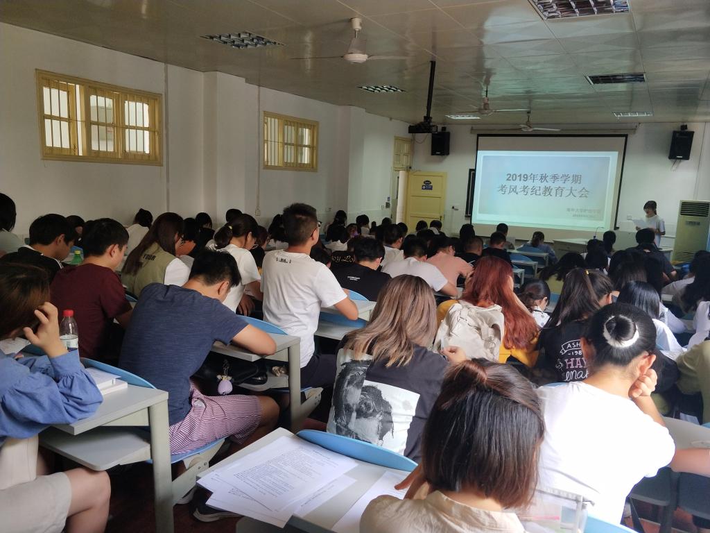 为进一步强化考试纪律,严肃考风考纪,2019年9月26号,365英国上市公司召开了2019年秋季学期考风考纪教育大会专题会议。学院党委副书记彭建南,学工室主任李翼,团委书记夏艺萍,一年制辅导员陈熙老师出席会议,学习部干部以及2017、2018级所有补考学生参加会议。