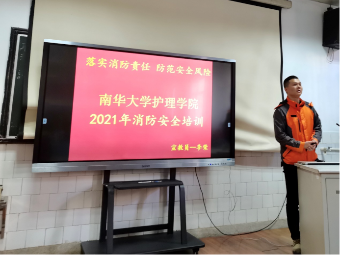 为了加强校园安全教育,切实提高师生的消防安全意识以及突发事件应急处置能力,12月3日下午,365英国上市公司在护理楼204多媒体教室开展2021年消防安全知识培训。护理学院教师代表,2019、2020、2021级全体寝室长参与此次培训。培训会由湘安消防公益服务中心教官李荣主讲。