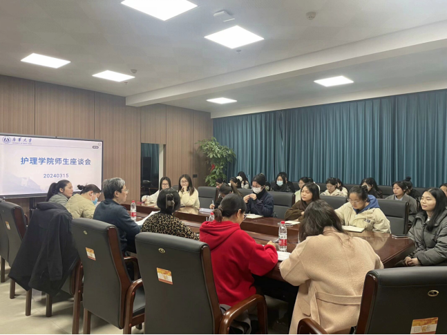 3月15日上午,2021级师生座谈会在南华楼902会议室召开。护理学院党委书记袁春阳、党委副书记王祥、教务办主任欧阳丽以及辅导员代表参加了会议。会议由学工办主任陈小兰主持,2021级主要学生代表参加了此次座谈会。