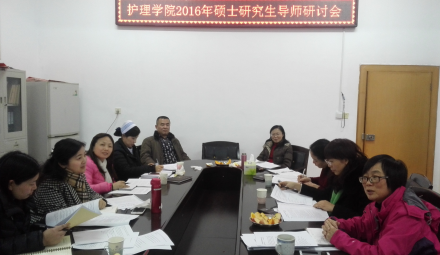 2016年3月10日下午3点,护理学院2016年硕士研究生导师研讨会在学院会议室成功举行。护理学院院长廖力、党委书记周浩、副书记余晓秋、专业学位负责人万艳平、院长助理曾谷清和教学办主任王蓉出席会议,南华大学附一医院护理部主任欧玉兰、附二医院护理部副主任谭玲玲、南华医院院长助理王冬梅等研究生导师参加会议。