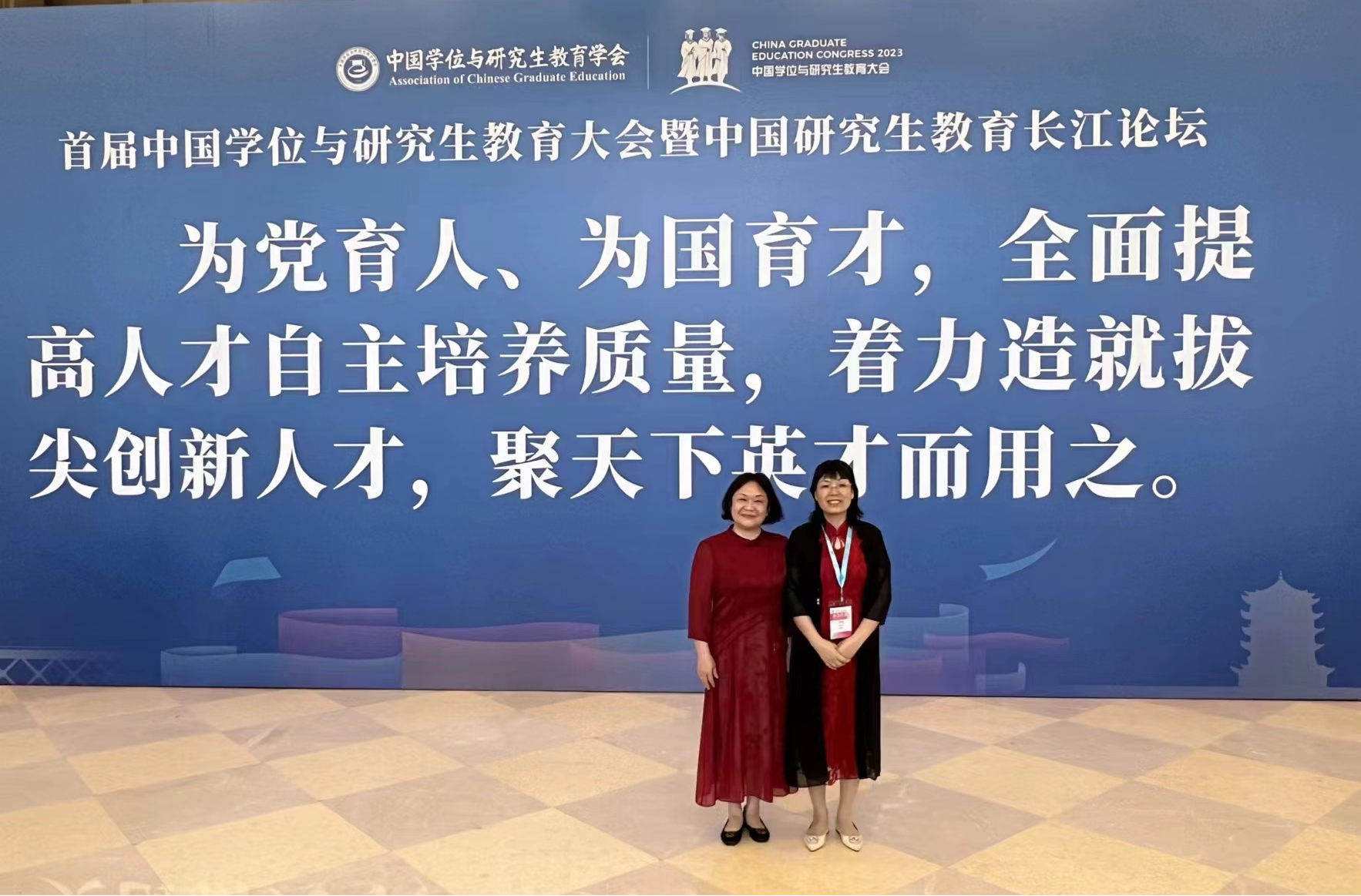 2023年7月4日至6日,首届中国学位与研究生教育大会暨中国研究生教育长江论坛在武汉召开。大会由中国学位与研究生教育学会与武汉市人民政府共同主办,会议主题为“为党育人、为国育才,全面提高人才自主培养质量,着力造就拔尖创新人才,聚天下英才而用之”。护理学院副院长曾谷清和教师莫文娟参加大会。