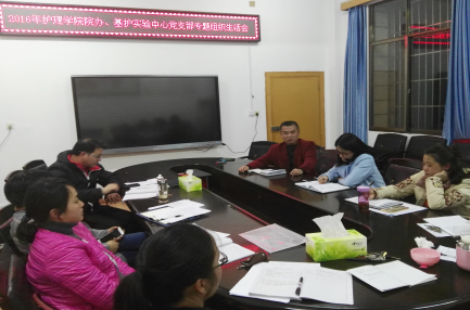 3月6日,护理学院院办、基护实验中心党支部召开2016年度专题组织生活会。会议由院办党支部书记王晓兰主持,两个支部全体党员参加会议。护理学院党委书记周浩到会指导。