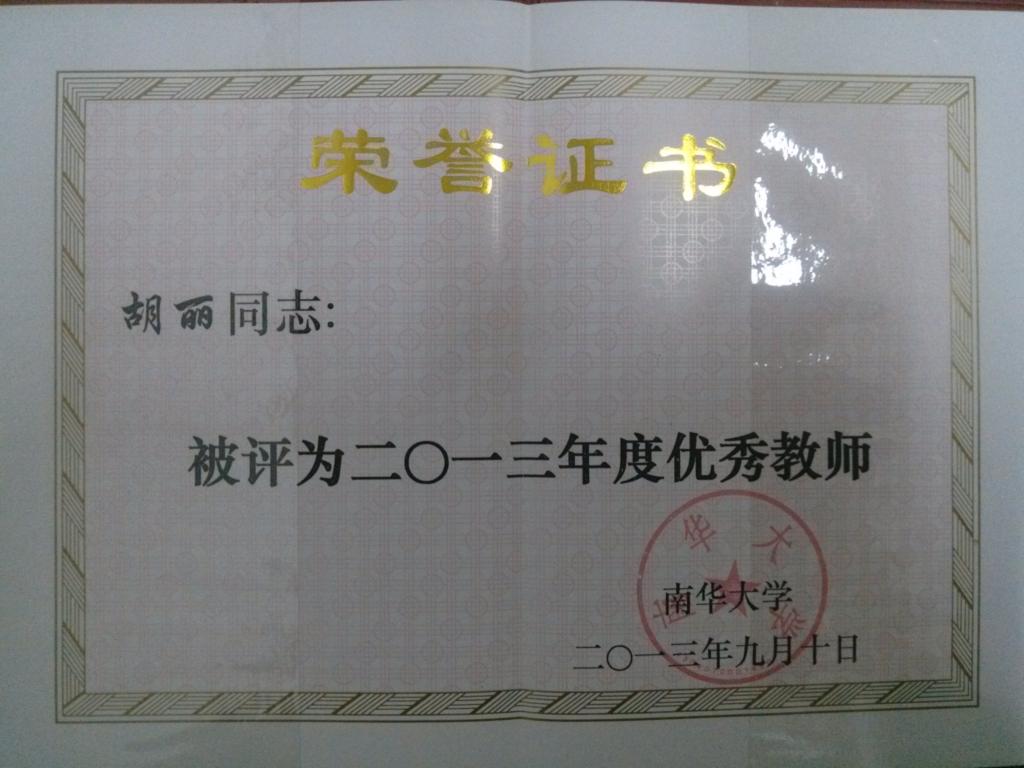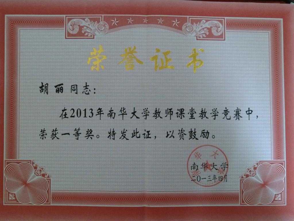 16、胡丽同志在2013年南华大学教师课堂教学竞赛中,荣获一等奖。