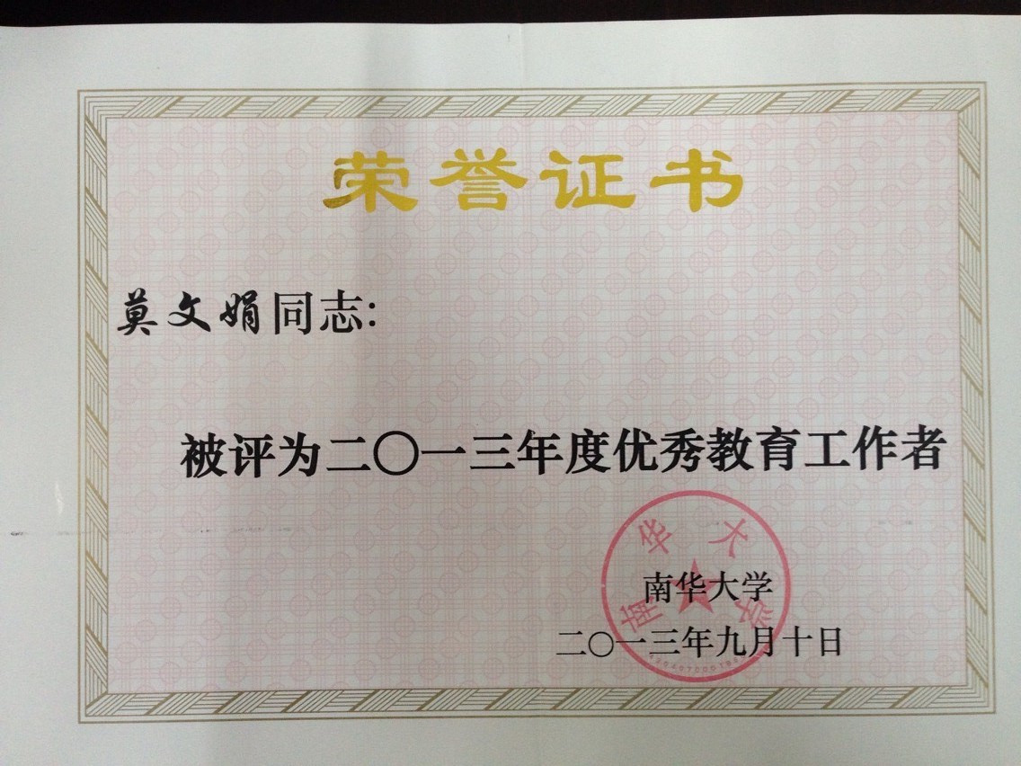 17、莫文娟同志,被评为2013年度优秀教育工作者。