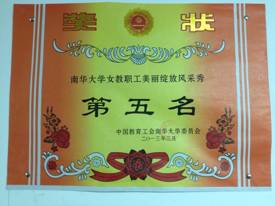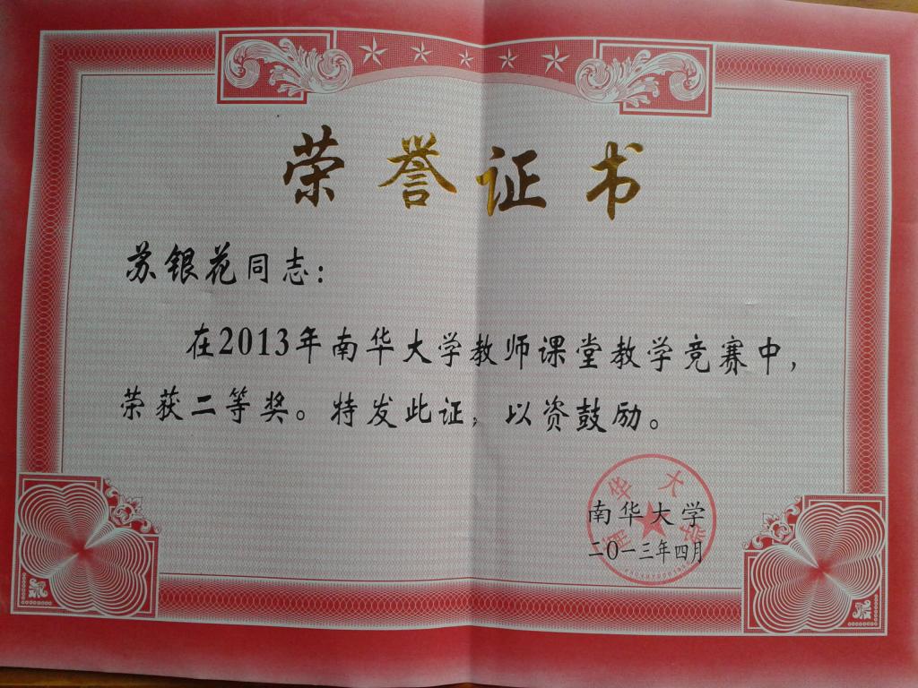 8、苏银花同志,在2013年南华大学教师课堂教学竞赛中,荣获二等奖。