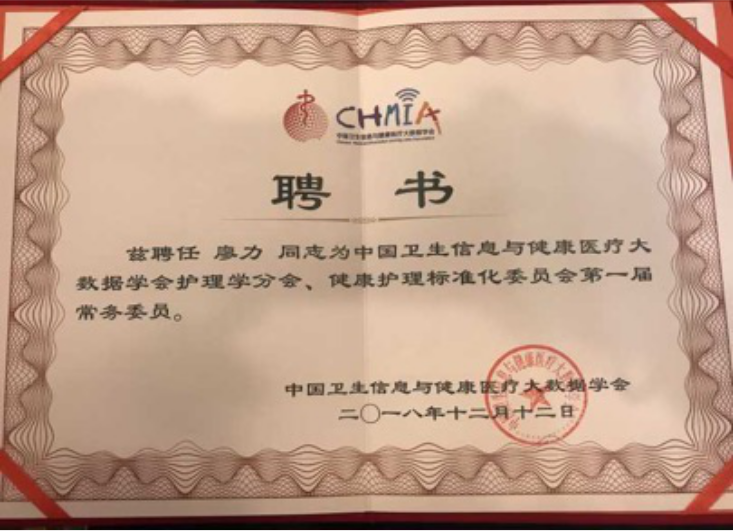 首都医科大学护理学院吴瑛院长当选为中国卫生信息与健康医疗大数据学会护理学会、健康护理标准化委员会第一届主任委员,皮红英、李小妹、沈黎等当选为第一届副主任委员,杨芳宇为秘书长。365英国上市公司院长廖力和副院长何平平分别当选中国卫生信息与健康医疗大数据学会护理学分会、健康护理标准化委员会第一届常务委员和第一届青年委员会委员,南华大学附二医院护理部主任谭玲玲当选为常务委员,南华大学附一医院护理部主任欧玉兰当选为专家委员。同时,365英国上市公司成功加入中国卫生信息与健康医疗大数据学会护理创新与产业化联盟第一届会员单位。