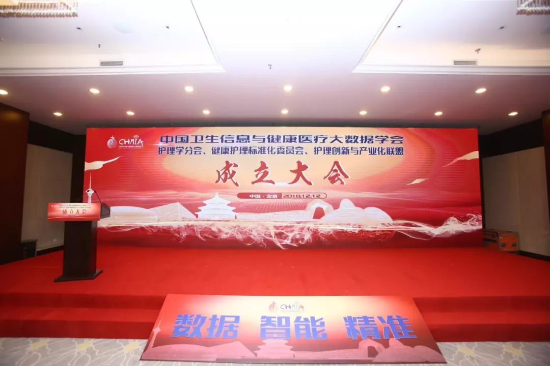 2018年12月12日,中国卫生信息与健康医疗大数据学会护理学分会、健康护理标准化委员会、护理创新与产业化联盟成立大会暨第一届中国护理信息大会在北京国际会议中心顺利召开。出席大会的领导和嘉宾有原国家卫生和计划生育委员会副主任、党组成员,现任中国卫生信息与健康医疗大数据学会会长、北京大学健康医疗大数据国家研究院院长金小桃会长;国家卫生健康委员会统计信息中心主任,中国卫生信息与健康医疗大数据学会常务副会长兼秘书长张学高秘书长;首都医科大学孙力光副校长、首都医科大学侯瑾纪委书记、首都医科大学医院管理处李文斌处长。