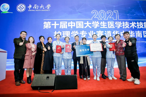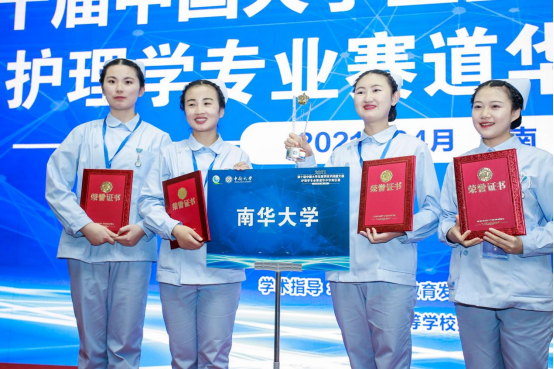 2021年4月11日,由教育部主办的主题为“尚德精术培育卓越人才,中西并重共筑健康中国”第十届中国大学生医学技术技能大赛护理学专业赛道华中华南分区赛圆满落幕。本次大赛由中南大学承办,共有56所本科院校的护理专业选手参赛。南华大学代表队由南华医院廖勇仕副院长领队,护理学院2017级本科生林佳雪、李双景、彭慧、文稀参赛。