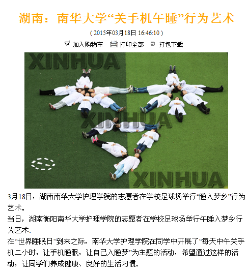 上一条:【中新社】中新网:湖南南华大学行为艺术倡“关手机午睡入梦” 下一条:关于2014年护理学院岗位分级暨教学效果评优的公示