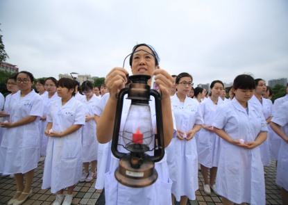 伴随庄严而温馨的音乐,104名即将走上临床护理岗位的护生手捧蜡烛,在“提灯女神”段功香教授的带领下缓缓走过“护理人之路”。护理教师为104名护生戴上圣洁的燕尾帽。在吴艳平教授的带领下所有护生宣读南丁格尔誓言,继承和发扬南丁格尔精神,守护健康和生命。