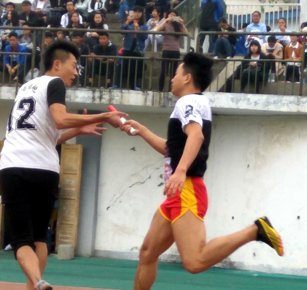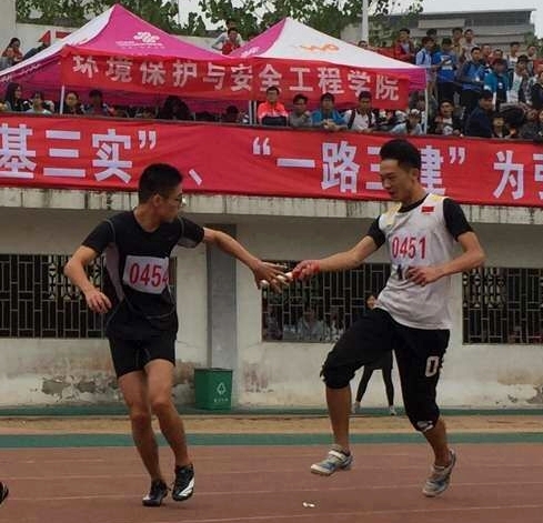 是啊,因为热爱,所以奔跑。这不禁让我们在心里默默地为这四个学院的“Hero”竖起大拇指。或许就是一颗颗热爱田径的心把他们紧紧地联系在了一起,默契十足。无论场上发生何种意外状况,他们都能勇往直前,势不可挡。