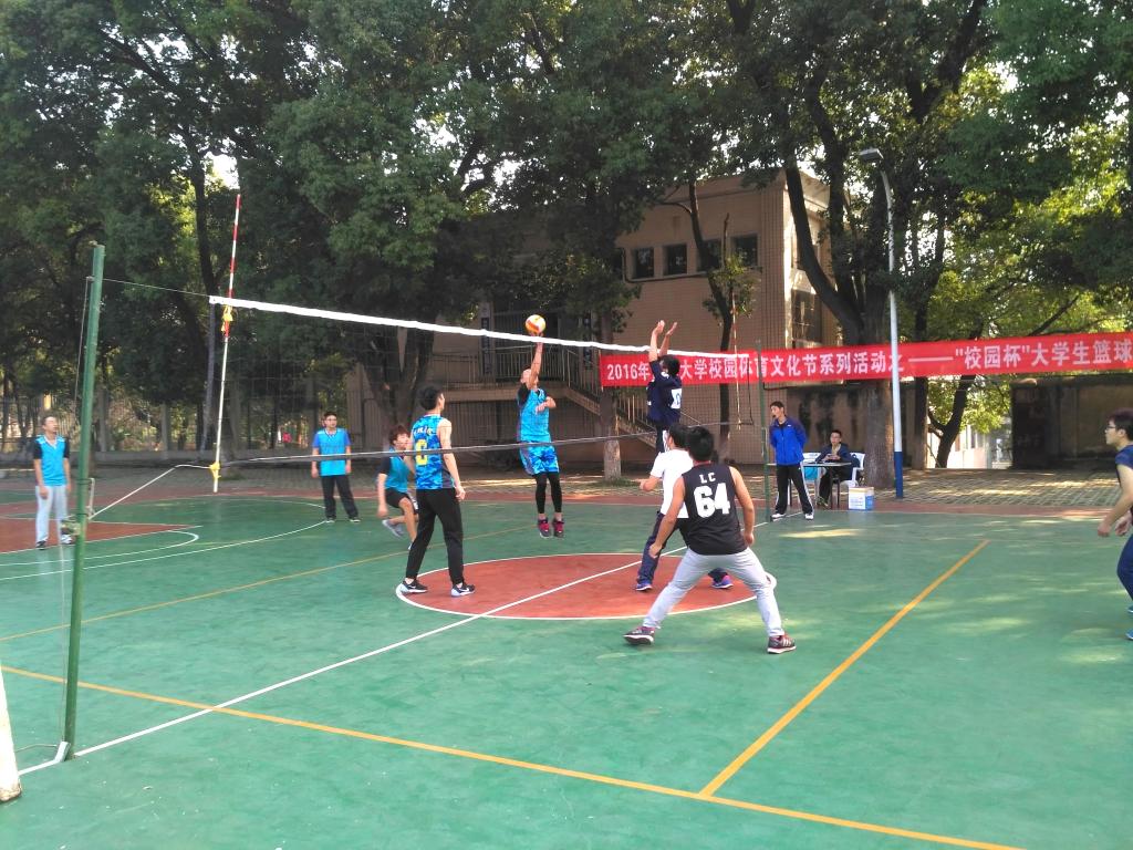 2016年11月6日上午,由刘峰为首,陈祎,申种美,张骞凯,田晏争,贾昊臻,王浩宇,夏天组成的护理学院男排代表队依次对阵化学化工学院和电气工程学院,学工室李翼老师出席观看比赛。比赛在红湘校区南校篮球场激烈展开,护理学院最终分别以2:1、2:0夺得胜冠。