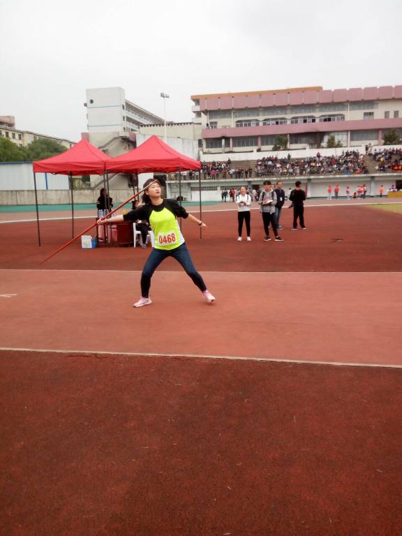 她心无旁骛,努力拼搏。当场上的加油声响起,所有人都为径赛运动员加油助威的时候,她还在默默努力。即使没有呐喊声也没有掌声,她依然专注于标枪的投掷,专注于自己的比赛。标枪场地上聚精会神的她,成了北校田径场上最美的风景!