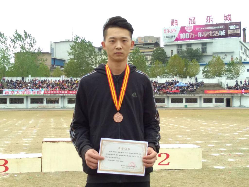2017年10月14日,南华大学师生田径运动会学生组男子跳高项目如期举行。护理学院的贾昊臻同学,在比赛中表现突出,最终获得第三名的好成绩。除了跳高,贾昊臻同学还参加了护理学院男子4×100接力赛。我们能在赛场上看到这样一幕:正在进行跳高的贾昊臻同学在跳高场地和跑道上来回穿梭。贾昊臻同学心系集体荣誉的表现,完美诠释了护理学院“能尽责,敢担当”的精神。