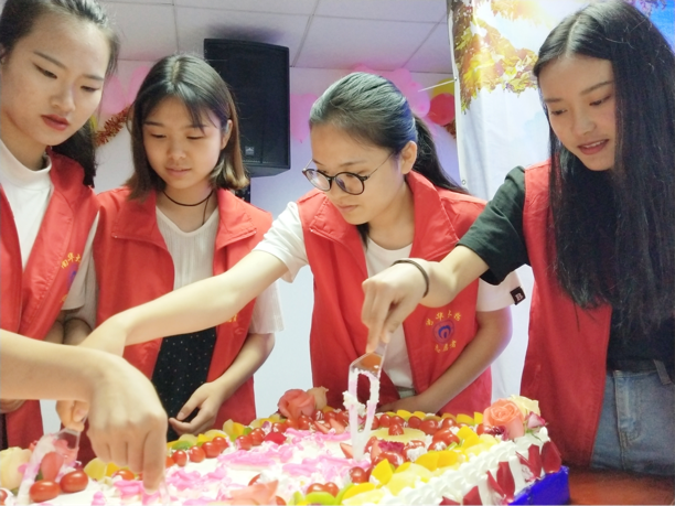 为了活动能顺利进行,部分成员提前来到医院布置活动场地,张贴气球、摆放座位、整理展板,有条不紊地完成活动的准备工作。活动开始,护理学院主席团代表与青志干事们随同残联亲友协会志愿者为精神病患者分发蛋糕,并帮助女企业家们分发礼品。所有人一起为患者们庆祝生日,护理学院志愿者们精心准备了文艺汇演。首先,护理学院杨春等四位主席团团干为大家深情朗诵诗歌《感恩的心》。随后,在护理学院院青志干事伍聪的带领下,青志队奉上精彩的手语操《相亲相爱一家人》。最后,在一片掌声中全体人员合唱歌曲《阳光总在风雨后》。每一个节目都凝聚着爱心与关心,志愿者们用行动来表达着她们对患者们的支持和鼓励,让暖意流入每一个人的心房。