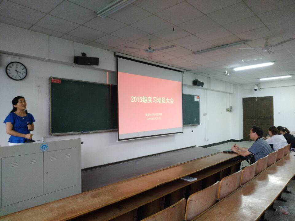 接着,何平平副院长做实习指导。何平平副院长强调,为了提高实习质量,我院根据国家标准,对2013版护理本科生实习大纲进行了修订,实习前9个月在实习医院进行临床护理实习,于2019年2月8日结束医院实习,后一个月在精神科实习,实习时间共为40周,实习具体规划由医学部统一安排;每个同学都有实习手册,用以记录实习过程和教师评价;实习过程中,学院领导和老师会到医院看望大家,了解大家的实习状态和进展,检查实习的效果。她希望2015级实习生积极参加今年9月即将举行的南华大学护理临床技能大赛,并取得优异成绩。