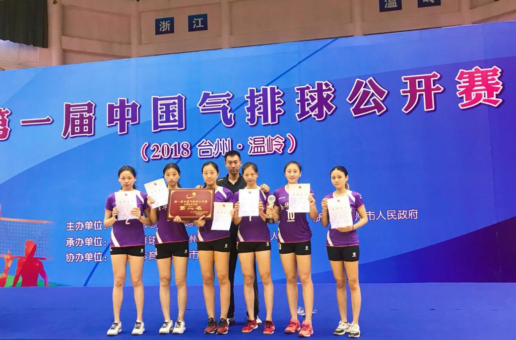 南华大学女子排球代表队在第一届中国气排球公开赛获得大学生女子组第二名的优异成绩。护理学院魏子榕、李兴芬和刘庆罗莎参加比赛。