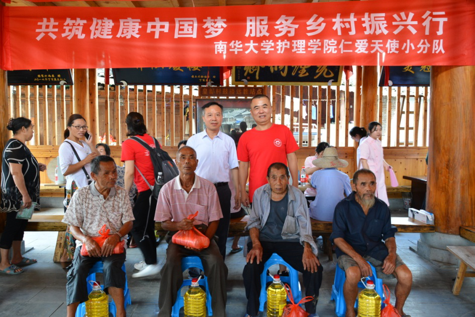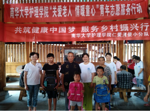此次志愿服务由护理学院党委书记周浩、院长廖力、副书记彭建南、副院长曾谷清以及何平平等学院领导带领教师学生代表共20余人一起参加奉献爱心活动。周浩书记和彭建南副书记为侗寨的孤寡老人送上了生活用品;廖力院长、曾谷清以及何平平副院长为侗寨的留守儿童赠送了学习用品。两位书记还带领“仁爱天使”小分队发放了调查问卷,进一步了解了侗寨村民的生活情况和脱贫攻坚情况。