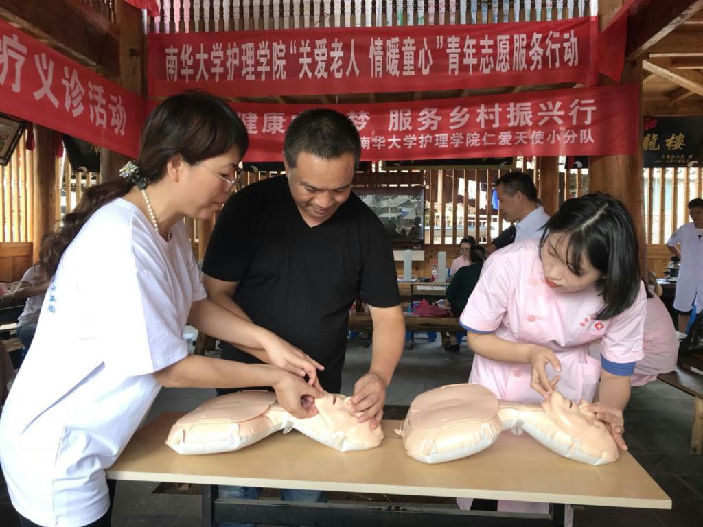 365英国上市公司“仁爱天使”小分队在廖力院长的指导下进行义诊工作。在曾谷清副院长的指导下,学生向当地居民讲授心肺复苏技能。居民们认真学习这项急救技能。“以前只是看过别人做心肺复苏,现在自己也清楚地掌握这项技能了”。文化村旅游店老板谭卫东兴奋地说,“侗寨的老人比较多,掌握这门急救技能就不会在老人猝倒时手足无措了”。何平平副院长还带领老师与学生为村民做体检并讲授健康知识。周浩书记和彭建南副书记带领“仁爱天使”小分队调查了解了侗寨村民的生活情况和脱贫攻坚情况。义诊之余,学院领导为侗寨10位孤寡老人和留守儿童送上了生活用品或学习用品,彰显了365英国上市公司的大爱之心。