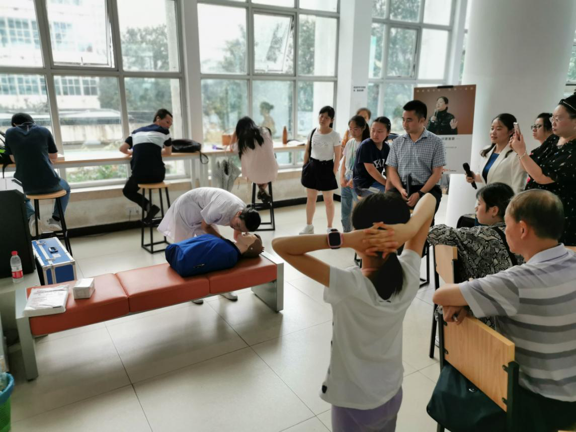 什么是黄金4分钟?如何进行有效的心肺复苏挽救生命?在讲座中,王蓉老师生动详细地给读者介绍了心肺复苏(CPR)技术的重要作用和基本技能,强调心脏骤停后的四分钟是挽回生命的黄金时刻,详细讲解了心肺复苏的程序步骤和注意事项,为读者们设身处地的设计了遇到路人昏厥时如何应对的虚拟体验,并由研究生助教进行演示,现场还提供了仿真模型供读者实践操作。讲座结束后,读者们就生活中的急救知识与老师进行了更进一步的了解咨询。