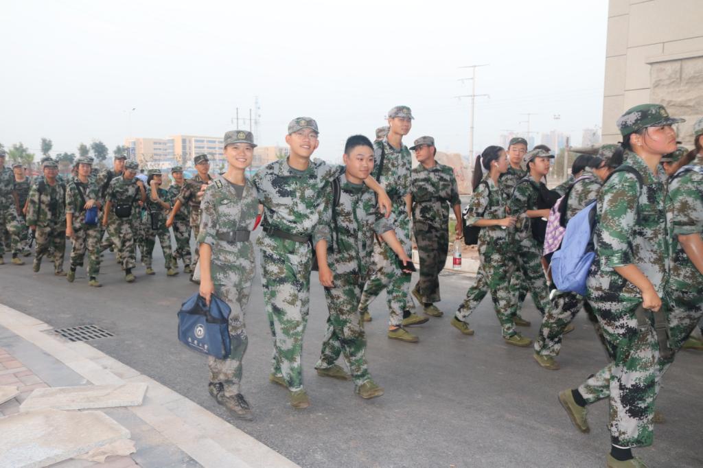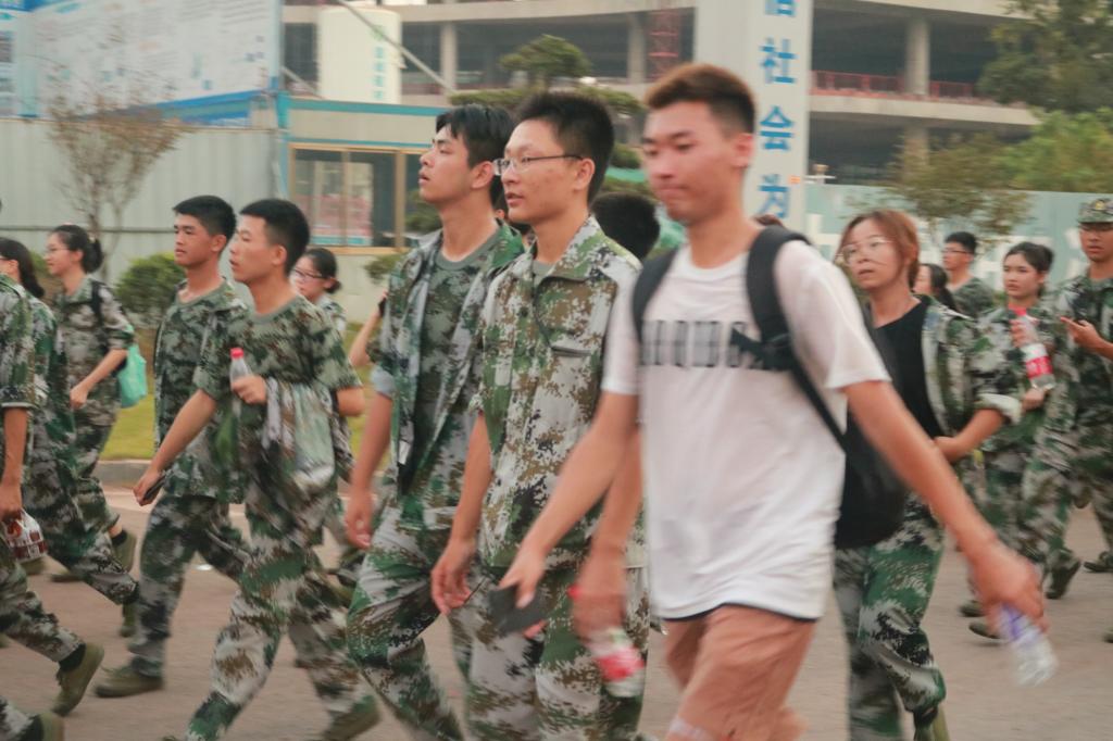 拉练途中,大家一路高唱军歌,呼喊口号,斗志昂扬。虽然汗水早已浸湿了衣衫,不少同学小腿酸痛,但是他们一路上克服疲惫与疼痛,不服输,不喊累,始终保持高昂士气,饱满热情,积极投入。十公里拉练路,疲倦不堪,但在学院领导老师的亲切鼓励下,教官与团学干部的帮助下,新生克服困难顺利到达雨母校区目的地。