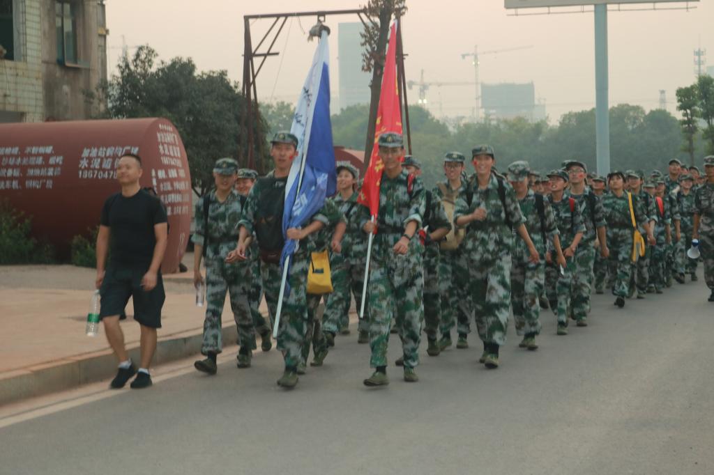 2019年9月9日,清晨四点,护理学院2019级新生已经在北校田径场集结,军训重要科目徒步拉练即将开始。随着教官一声令下,队伍迈着整齐有力步伐,精神昂扬向雨母校区出发。学院党委副书记彭建南、团委书记夏艺萍及一年制辅导员陈熙老师随队,部分团学干部及班助随行,担任拉练的后勤保障。